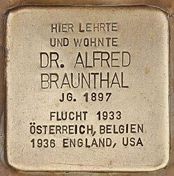 Stolperstein für Dr. Alfred Braunthal | Christian Michelides | Christian Michelides | Datei:Stolperstein für Dr. Alfred Braunthal (Gera).jpg |