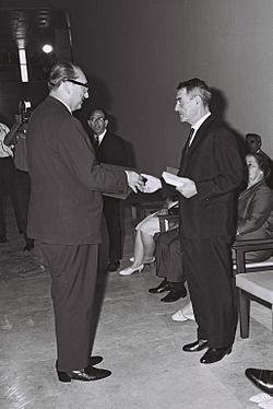 | KADISH LUZ & THE PRESIDENT OF AUSTRIAN NATIONAL COUNCIL DR. ALFRED MALETA EXCHANGING GIFTS IN A CEREMONY AT THE RECEPTION HALL IN THE NEW KNESSET BUILDING IN JERUSALEM. | This is available from National Photo Collection of Israel, Photography dept. Government Press Office ( link ), under the digital ID D656-140 . This tag does not indicate the copyright status of the attached work. A normal copyright tag is still required. See Commons:Licensing for more information. | Moshe Pridan | Datei:Alfred Maleta - Kadish Luz - Knesset 31-08-1966.jpg | |