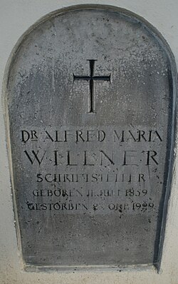 | Alfred Willner-Feuerhalle Simmering (Abt. MR, Gr. 164, Nr. 3) | Eigenes Werk | Wellano18143 | Datei:Feuerhalle Simmering - Urnenhain - Alfred Willner.jpg | |