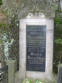 | Grab von Alfred Moschkau (1848-1912) auf dem Friedhof des Klosters Oybin | Eigenes Werk | Reinhard Dietrich | Datei:Grab Alfred Moschkau.jpg | |