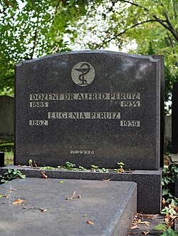 | Grab des Dermatologen Alfred Perutz (1885–1934) und von Eugenia Perutz (1862–1939) im Neuen Israelitischen Teil des Wiener Zentralfriedhofes (15a/6/27). | Eigenes Werk | Papergirl | Datei:Grave of Alfred Perutz, Vienna, 2018.jpg |