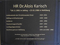 - ↑ Würdigung im Lavanttal: Dr.-Alois-Karisch-Gedenktafel wurde enthüllt. In: meinbezirk.at. 23. September 2022, abgerufen am 23. September 2022.