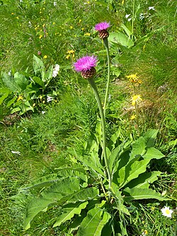 | Alpen-Bergscharte (Stemmacantha rhapontica, Asteraceae); Arolla, Kanton Wallis, Schweiz | Eigenes Werk | MurielBendel | Datei:Stemmacantha rhapontica Arolla1.JPG | |