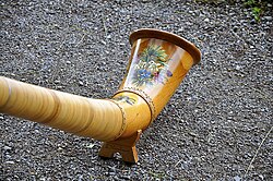 Detail eines Alphorn mit folkloristischer Bemalung | Eigenes Werk | Andreas Faessler | Datei:Alphorn detailaufnahme.jpg | |