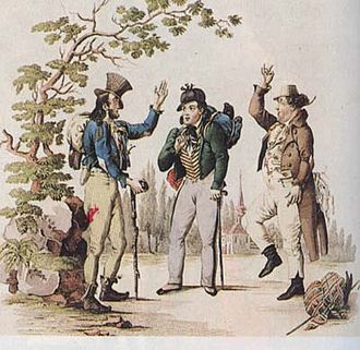 | Johann Nestroy mit Wenzel Scholz und Carl Carl in “Der böse Geist Lumpazivagabundus” (1834) | Wiener Theatralische Bildergalerie, Jg. 1 (Hsg. Adolf Bäuerle) | Johann Christian Schoeller | Datei:NestroyLumpazivagabundus.jpg | |