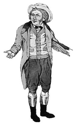 | Ignaz Schuster als Staberl in der Posse "Die Bürger in Wien" von Adolf Bäuerle | Kolorierte Zeichnung | Unbekannt | Datei:StaberlSchuster.jpg |