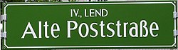 | Grazer Straßenschild "Alte Poststraße" | Eigenes Werk | Moschitz | Datei:Strassenschild Graz Alte Poststrasse (2006).jpg |