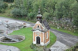 | Flößerkapelle, Gruber-Kapelle | Eigenes Werk | Isiwal | Datei:Altenmarkt St Gallen Flößerkapelle von oben.JPG | |