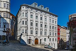 | Das Apothekerhaus Hofberg 10 in der Linzer Altstadt wie es sich im September 2016 präsentiert. | Eigenes Werk | Isiwal | Datei:Linz Hofberg 10 Apothekerhaus-1644.jpg | |