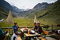 | Alpenvereinsleute auf der Hüttenterrasse, im Hintergrund der Sulztalferner | Eigenes Werk | Burkhard Mücke | Datei:Exkursion zur Amberger Hütte 41.jpg | |