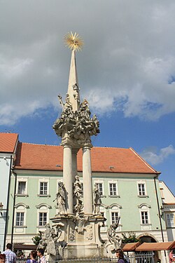 - ↑ Statuengruppe der Heiligen Dreifaltigkeit (Pestsäule) ( des vom 4. März 2016 im Internet Archive) Info: Der Archivlink wurde automatisch eingesetzt und noch nicht geprüft. Bitte prüfe Original- und Archivlink gemäß Anleitung und entferne dann diesen Hinweis. abgerufen am 14. November 2010