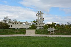 | Mahnmal auf dem Gelände des ehemaligen Anhaltelagers Wöllersdorf | Eigenes Werk | Peter Haas | Datei:Denkmal Woellersdorf-DSC 4049w.jpg | |