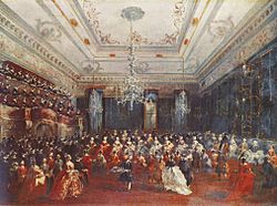 | Galakonzert zu Ehren des russischen Thronfolgerpaares in der Sala dei Filarmonici in den Alten Prokuratien, Venedig, 1782. | The Yorck Project (2002) 10.000 Meisterwerke der Malerei (DVD-ROM), distributed by DIRECTMEDIA Publishing GmbH. ISBN : 3936122202 . | Francesco Guardi | Datei:Francesco Guardi 052.jpg | |