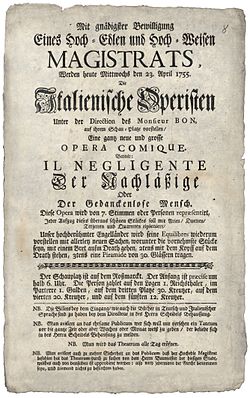 | Il Negligente, Aufführung in Frankfurt a.M. am 23. April 1755, Wanderoper Girolamo Bon. (Universitäts Bibliothek der Goethe Universität Frankfurt a.M.) | Diese Datei wurde von diesem Werk abgeleitet: Theaterzettel Frankfurt a.M. 1755-04-23.pdf : | Theaterzettel_Frankfurt_a.M._1755-04-23.pdf : unbekannt, seit mehr als 70 Jahren tot derivative work: Hic et nunc Auftrag: Motmel | Datei:Theaterzettel Frankfurt a.M. 1755-04-23-b.jpg |