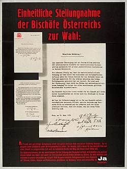 - ↑ Bekennerschreiben der katholischen Bischöfe Österreichs zum „Deutschen Reich“ im Vorfeld der Volksabstimmung am 10. April 1938 vom 18. März 1938, ÖNB OEGZ S56/57.