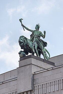 | Sculpture on top of Česká národní banka building - Prague, Czech Republic | Eigenes Werk | Giorgio Galeotti | Datei:Sculpture on top of Česká národní banka building - Prague, Czech Republic - May 18, 2019.jpg |