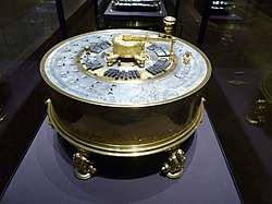 | Rechenmaschine von Anton Braun (1686-1728), datiert 1727; Messing vergoldet, teilweise verzinnt; Seitenansicht | Eigenes Werk | U.Name.Me | Datei:Rechenmaschine ii.jpg |
