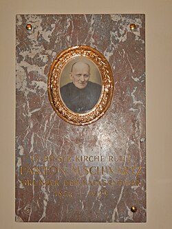 | Gedenktafel für Anton Maria Schwartz (Wien, Pater-Schwartz-Gasse 10, Kirche) | Eigenes Werk | GuentherZ | Datei:Wien15 Pater-Schwartz-Gasse010 Kirche 2018-11-19 GuentherZ GD Schwartz 2770.jpg | |
