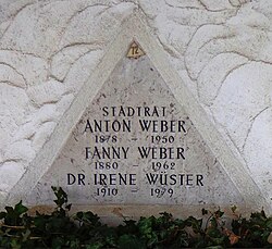 | Feuerhalle Simmering - Arkadenhof (Abteilung ALI) - Ehrengrab von Stadtrat Anton Weber (1878–1950) | Eigenes Werk | PicturePrince | Datei:Feuerhalle Simmering - Arkadenhof (Abteilung ALI) - Anton Weber (1878–1950) 03.jpg | |