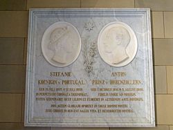| Burg Hohenzollern : Michaelskapelle - Vorraum-Erinnerungstafel für Stephanie von Hohenzollern-Sigmaringen und Anton von Hohenzollern-Sigmaringen | Eigenes Werk | Rainer Halama | Datei:Hohenzollern-Michaelskapelle-Vorraum105717.jpg |