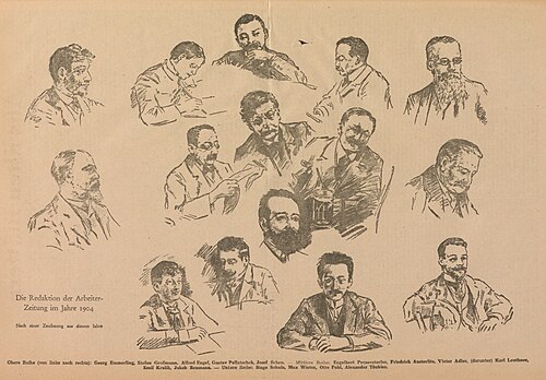 - ↑ Viktor Adler: Zehn Jahre. In: Arbeiter-Zeitung – Zentralorgan der österreichischen Sozialdemokratie., 1. Jänner 1905, S. 1 (online bei ANNO).