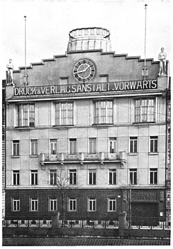 - ↑ Das Vorwärts-Haus und seine Geschichte. In: VGA – Geschichte der ArbeiterInnenbewegung. Hrsg. vom Verein für Geschichte der ArbeiterInnenbewegung, ohne Datum, abgerufen am 5. Juli 2018.