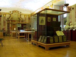 | Schausammlung des Archivs der Universität Wien (ehem. Refektorium der Jesuiten) | Eigenes Werk | Paolo Budroni , Universitätsbibliothek Wien Archiv der Universität Wien | Datei:Schausammlung im Archiv der Universitat Wien.jpg | |