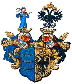 Der Bruder des Bischofs Josef Franz, Georg (1705–1792),[38] wurde 1729 in die Salzburger Landtafel aufgenommen, stieg im Hofdienst des Fürsterzbischofs bis zum Obersthofmeister auf und tat sich als Gönner und Förderer des jungen Wolfgang Amadeus Mozart hervor. Seine Tochter Maria Anna (1741–1764)[39] beherbergte die Familie Mozart im Winter 1763/64 im Pariser Hôtel de Beauvais, dem Sitz ihres Ehemannes, des kurbayerischen Gesandten Graf Maximilian van Eyck. Sie ermöglichte dem 7-jährigen Wunderkind Auftritte vor der adligen Pariser Gesellschaft und dem französischen Königshof in Versailles. Ihr Bruder Karl (1743–1830),[40] der auch ein hohes Hofamt beim Salzburger Fürsterzbischof innehatte, ging mit einem legendären „Fußtritt“ in die Musikgeschichte ein, mit dem er Mozart 1781 nach dessen wiederholten Auftritten unsanft aus dem Vorzimmer und den Diensten des Erzbischofs entfernte.