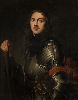 Prospers Sohn Johann Baptist (ca. 1650–1715)[64] errang unter Kurfürst Max Emanuel die meisten militärischen Erfolge aller Arcos. Nach Kriegserfolgen bei der Befreiung Wiens von den Türken 1683 gehörte er seit 1686 dem Generalstab des Kurfürsten an. 1688 wurde er Generalfeldmarschall-Leutnant und 1698 Präsident des Hofkriegsrates. Sein Reiterregiment, die „Arco-Kürassiere“, hatte wesentlichen Anteil an den Siegen Max Emanuels 1687 bei Mohács und 1688 bei Belgrad. Für seine Leistungen während des Spanischen Erbfolgekrieges 1702/1703 in Süddeutschland gegen die kaiserlichen Truppen wurde er 1702 zum Generalfeldmarschall ernannt und von Philipp V. mit dem spanischen Orden vom Goldenen Vlies[65] ausgezeichnet. 1703 war er am bayerischen Feldzug gegen Tirol beteiligt, der zur Zerstörung Arcos sowie der Burgen Penede und Drena durch den französischen General Vendôme führte. Als Johann Baptist während des Exils des bayerischen Kurfürsten in Paris lebte, erhielt er von König Ludwig XIV. eine bedeutende Entschädigungssumme für die durch die Franzosen in der Grafschaft Arco verursachten Schäden. In München ist die Arco-Straße nach ihm benannt.[66]
