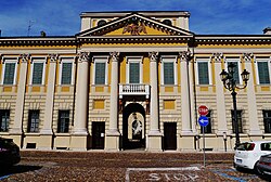 Reichsgraf Franz Albert (1647–1709)[31] wurde 1696 durch seine Heirat mit Gräfin Therese Chieppio Stammvater des bis 1917 blühenden Mantuaner Zweiges. Der Name Chieppio wurde dem Familiennamen Arco angehängt. Sein Sohn Franz Eugen (1707–1776)[32] heiratete die Tochter des mantuanischen Ministers Marchese Lelio Ardizzoni und führte fortan den Namen Arco-Chieppio-Ardizzoni. Sitz der Familie war der Palazzo Chieppio, heute Palazzo d’Arco in Mantua. Dort fand 1810 die Kriegsgerichtsverhandlung und Verurteilung des Tiroler Freiheitshelden Andreas Hofer statt. In den nachfolgenden Generationen gab es in der Familie mehrere Wissenschaftler. Unter ihnen ragte Karl (ca. 1800 – 1873)[33] heraus als Autor von Werken über Nationalökonomie, Kunst und Archäologie, über die Geschichte von Mantua sowie als Maler historischer Gemälde. Der Platz vor dem Palazzo d‘Arco in Mantua wurde nach ihm in Piazza Carlo d'Arco umbenannt.