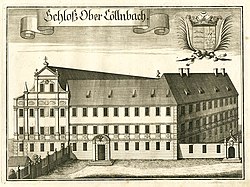 Enge Bande zu den bayerischen Wittelsbachern knüpfte der militärisch bedeutende Prosper (1615–1679).[61] Unter Kurfürst Ferdinand Maria war er Statthalter von Ingolstadt und bayerischer Hofkriegsratspräsident. Mehrere Regimenter trugen seinen Namen. In Norditalien kämpfte Prosper mit Unterstützung des bayerischen Kurfürstenpaares in Arco, Mantua und Cavriana um die Unabhängigkeit seines Geschlechtes von der Grafschaft Tirol. 1674 trat er als Generalfeldzeugmeister in kaiserlichen Militärdienst. Seine fünfte Ehefrau Susanna Gräfin von Haunsperg (um 1639–1692)[62] brachte die Grafschaft Valley in die Familie, die nach ihrem Tod den Grafen von Tattenbach und im 19. Jahrhundert wiederum den Reichsgrafen von Arco zufiel. Als ihr Sohn Leopold (1677–1703)[63] 1700 seine Cousine Maria Febronia Gräfin von Haunsperg (1684–1710) heiratete, kam der Besitz Oberköllnbach in die Familie. Die barocke Schlossanlage wurde 1971 verkauft.