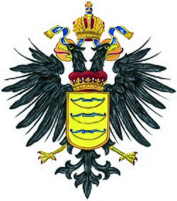 Gespaltenes Wappen des andreasischen Stammes mit Doppeladler