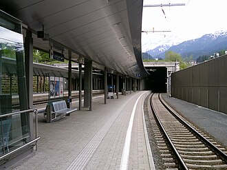 Neues Ostportal am Ende der Gleiseinhausung, am Bahnhof von St. Anton (2013)