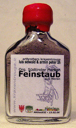 | "Original Südtiroler Markenfeinstaub" © kraxart 2006 | Www.kraxentrouga.it | Bruderjakob | Datei:Artbrothers Kraxentrouga Markenfeinstaub.jpg |