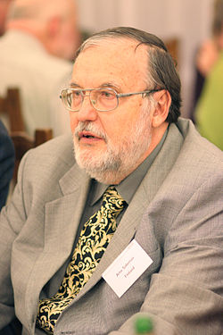| Portrait of Academician Arto Salomaa. Taken by Alexander Okhotin on 18 May 2005 in Dobogókő , Hungary, at the conference banquet of the AFL 2005 conference. Taken using a Canon 100mm f/2.0 lens mounted on 20D body, wide open, 1/125, ISO 1600, white balance digitally corrected. | Übertragen aus en.wikipedia nach Commons durch Premeditated Chaos mithilfe des CommonsHelper . | Okhotin in der Wikipedia auf Englisch | Datei:C04 0272-ArtoSalomaa.edited.jpg | |