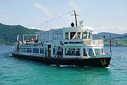 | Seefahrt mit Berufsschiffahrt in Österreich ; siehe auch Attersee-Schifffahrt | Selbst fotografiert ( Originaltext: selbst geknipst ) | MrsMyer in der Wikipedia auf Deutsch | Datei:ÖsterreichischeSeefahrt.JPG |