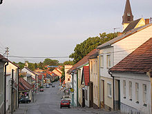 | Das Ortszentrum der niederösterreichischen Marktgemeinde Auersthal . Im Zentrum des Bildes die in erhöhter Lage errichtete röm.-kath. Pfarrkirche hl. Nikolaus . Ganz links das Gemeindeamt und unterhalb der Kirche das ehemalige Zeughaus der Feuerwehr. Dieses wurde 1965 anstelle eines Vorgängerbaues errichtet und wird (2018) nach Adaptierung als Weinladen genutzt. | Eigenes Werk | C.Stadler/Bwag | Datei:Auersthal - Ortszentrum.JPG | |