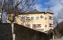 | "Schloss Aufhofen", Ansiedel. Spätgotischer Getreidespeicher mit späterem Zubau. Fenster mit breiter Leibung, verbretterter Giebel. | Eigenes Werk ( Originaltext: Eigene Aufnahme ) | MatthiasSuess ( Diskussion ) 08:20, 1. Jul. 2012 (CEST) | Datei:Ansiedel-aufhofen.jpg | |