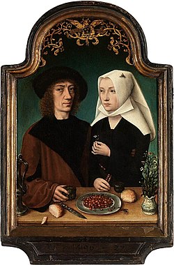| Master of Frankfurt , Self portrait with wife , 1496. Royal Museum of Fine Arts, Antwerp . | Eigenes Werk | painting: Master of Frankfurt; original 15th century frame: unknown; photograph: Stomme | Datei:Frankfurt master-artist and wife.jpg | |