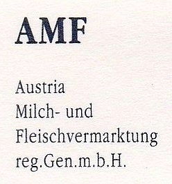 | Firmenlogo der Austria Milch- und Fleischvermarktung reg.Gen.m.b.H. (kurz AMF ). Die AMF war ein österreichisches Unternehmen, das als Konzern der Milch- und Fleischwirtschaft konzipiert war und von 1990 bis 1996 bestand. | Eigenes Werk | Autor/-in unbekannt Unknown author | Datei:Logo AMF 02.jpg |