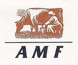 | Firmenlogo der Austria Milch- und Fleischvermarktung reg.Gen.m.b.H. (kurz AMF ). Die AMF war ein österreichisches Unternehmen, das als Konzern der Milch- und Fleischwirtschaft konzipiert war und von 1990 bis 1996 bestand. | Eigenes Werk | Autor/-in unbekannt Unknown author | Datei:Logo AMF 01.jpg | |