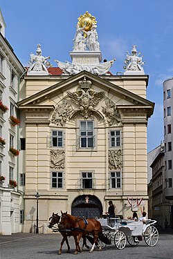 | The Bürgerliches Zeughaus in Vienna 's first district, located at Am Hof . | Eigenes Werk | Gryffindor | Datei:Bürgerliches Zeughaus Vienna Sept 2006.jpg | |