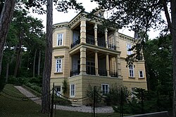 | Pałac Goetza - widok na wprost, ze skweru w przylegającym do obiektu parku w stylu angielskim. Zdjęcie z 17 maja 2014 r, z dni otwartych w Pałacu, w czasie gdy był już po niemal całkowitej renowacji. | Eigenes Werk | Daniel Nalepka | Datei:2014-05-17 foto 02.jpg | |