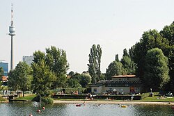 Bundesbad Alte Donau: Die ursprüngliche Militärschwimmschule „Alte Donau“ wurde am 20. Juni 1919 eröffnet. Anfänglich handelte es sich hier um einen einfachen Badeplatz, der von den Soldaten am benachbarten Schießplatz Kagran benutzt wurde und nun zu einem Familienbad ausgebaut worden war. Zwischen 1938 und 1945 nutzte die deutsche Wehrmacht das Bad, aus dem nach dem Zweiten Weltkrieg das „Bundesbad Alte Donau“ wurde.[11]
