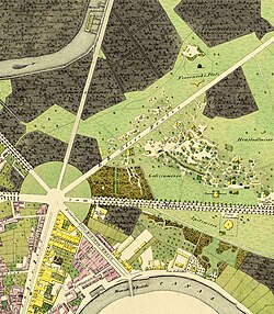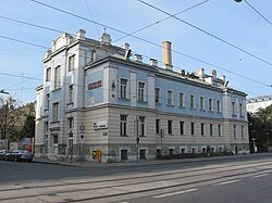 k.k. Militär-Schwimmschule: Die k.k. Militär-Schwimmschule wurde mit privatem Aktienkapital im unteren Kaiserwasser, wie der Hauptstrom der Donau im Raum Wien genannt wurde, errichtet und am 6. Juni 1813 als zweite Militär-Schwimmschule nach der in Prag eröffnet. Mit ein Grund für die Errichtung dieser Schwimmschule war der Umstand, dass unter der großen Zahl an Toten bei den Kämpfen gegen Napoleon 1809 in der Lobau ein hoher Anteil ertrunkener österreichischer Soldaten war.[2] Unterrichtet wurden hier Heeresangehörige, die als Abschlussprüfung den Hauptarm der Donau zu durchschwimmen hatten. Sie stand aber auch Zivilisten zur Verfügung und sonntags durften Frauen gegen Eintritt den Schwimmern zusehen. Dieser Umstand ließ den Verdacht unmoralischer Aktivitäten aufkommen und es wurde sogar die Forderung laut, ein Polizeiorgan zur Kontrolle der sittlichen Vorgänge abzustellen. 1815 fertigte Jakob Alt ein Aquarell der Anlage an, die 1874 infolge der Donauregulierung abgebrochen wurde.