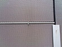 Detailansicht des Drahtgeflechtes, mit dem die Fassade des neuen Bahnhofs St. Anton verkleidet ist.
