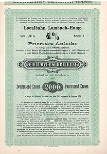 - ↑ Dieter Geerkens: Wertpapiere Österreichischer Eisenbahnen, Bd. 1, bahnmedien.at, Wien 2009, S. 130.