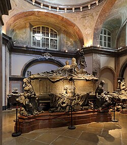 | Der Doppelsarkophag des Kaiserpaars Maria Theresia (1717-1780) und Franz I. (1708-1765) in der Kapuzinergruft in Wien, Österreichs größte Gruft. Der Doppdelsarkophag wurde bereits 16 Jahre vor dem Tod der Kaiserin von Balthasar Ferdinand Moll (1717-1785) nach ihren Wünschen gefertigt. | Eigenes Werk | C.Stadler/Bwag | Datei:Wien - Kapuzinergruft, Maria-Theresia-Gruft (3).jpg | |
