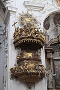 Die Kanzel der Servitenkirche mit den Figuren von Moll