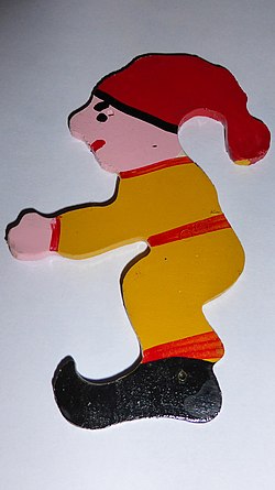 | Bamkraxler bemalte Sperrholzfigur; wesentlicher Teil des KInderspielzeuges, es ist nur die ausgesägte Sperrholzfigur dargestellt, siehe auch Bamkraxler | Eigenes Werk Originaltext : Eigenes Foto | Josef Fabing | Datei:Bamkraxler.JPG | |